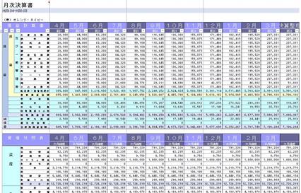 月次の決算書(画面) 月次の決算書(画面印刷)